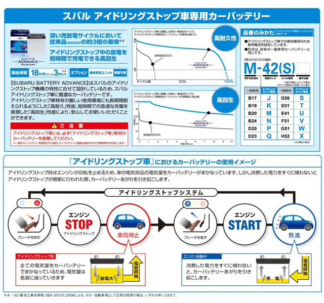 ·スバルのアイドリングストップ機構の特性に合わせて設計しているためスバルアイドリングストップ車に最適なカーバッテリーです。