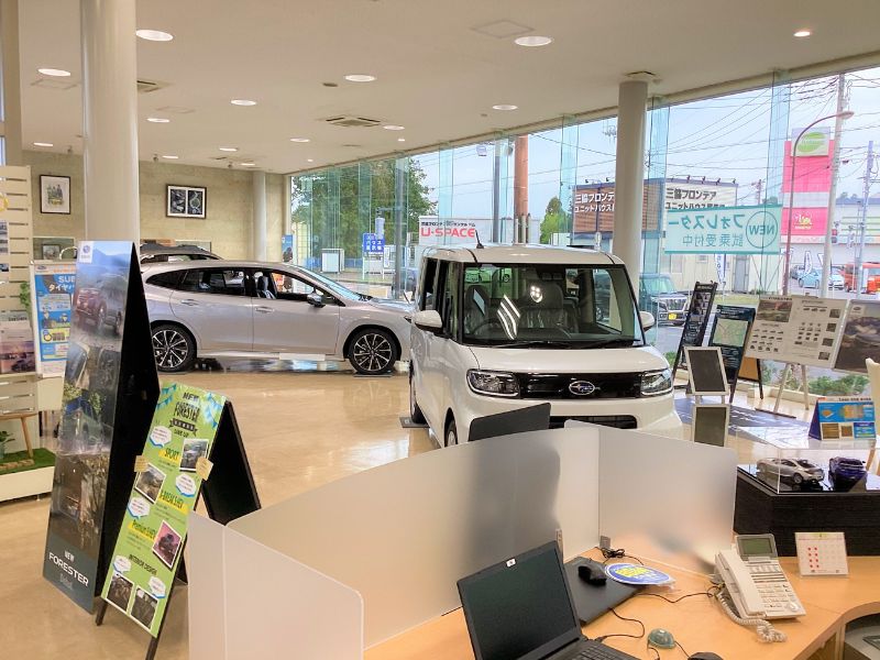 木工団地の一角に佇む鹿沼店。広々とした明るいショールームには、常時3台の展示車が並べられています。 試乗コースは渋滞知らず。ゆったりと自分のペースで、車の性能を確かめることができます。 テレビ、無料のドリンク自動販売機、フリーWi-Fi、インターネット用パソコンが設置されており、点検の待ち時間も快適です。 「仕事も楽しんでやる」のが鹿沼店スタッフのモットー。いつでも明るく、笑い声の絶えないお店です。ディーラーは入りにくい?そんなイメージは、きっと栃木スバル鹿沼店に来れば覆ります。 免許センターに行った帰りに、花木センターに行った帰りに、ぶっつけ秋祭りに行った帰りに、どうぞお気軽に鹿沼店にお立ち寄り下さい。皆様のお越しを心よりお待ちいたしております。 ※当店は「SUBARU Wi-Fi」導入店です。および、「ソフトバンクWi-Fiスポット」です。待ち時間などにご利用ください。