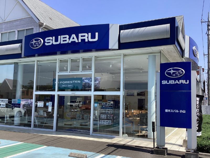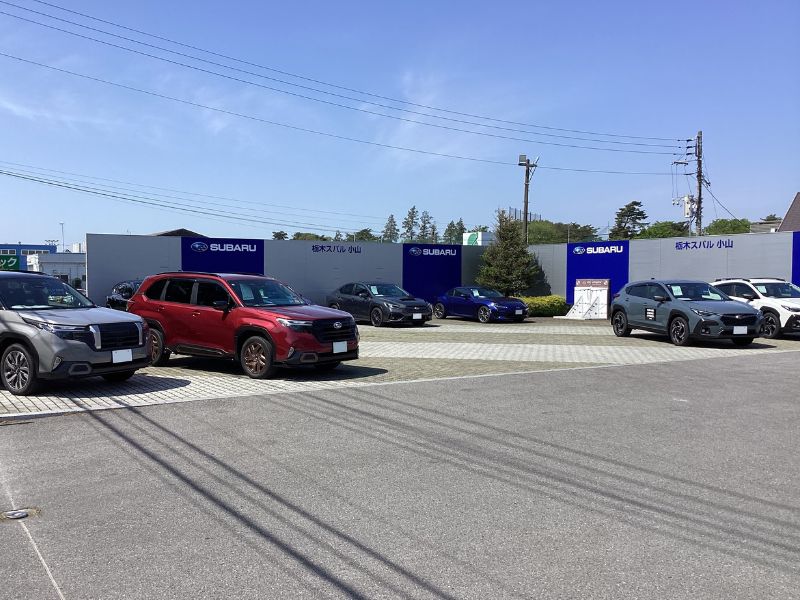 小山市の北部・国道4号沿いに位置する当店は、交通のアクセスも良く幅広い地域の方からご利用いただいており、明るく開放的なショールームと綺麗な整備工場は、お客様からたいへんご好評をいただいております。